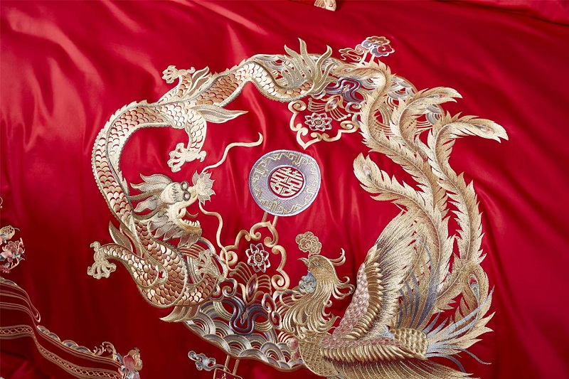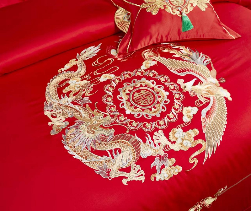 Trusă de nuntă cu brodare din bumbac roșu